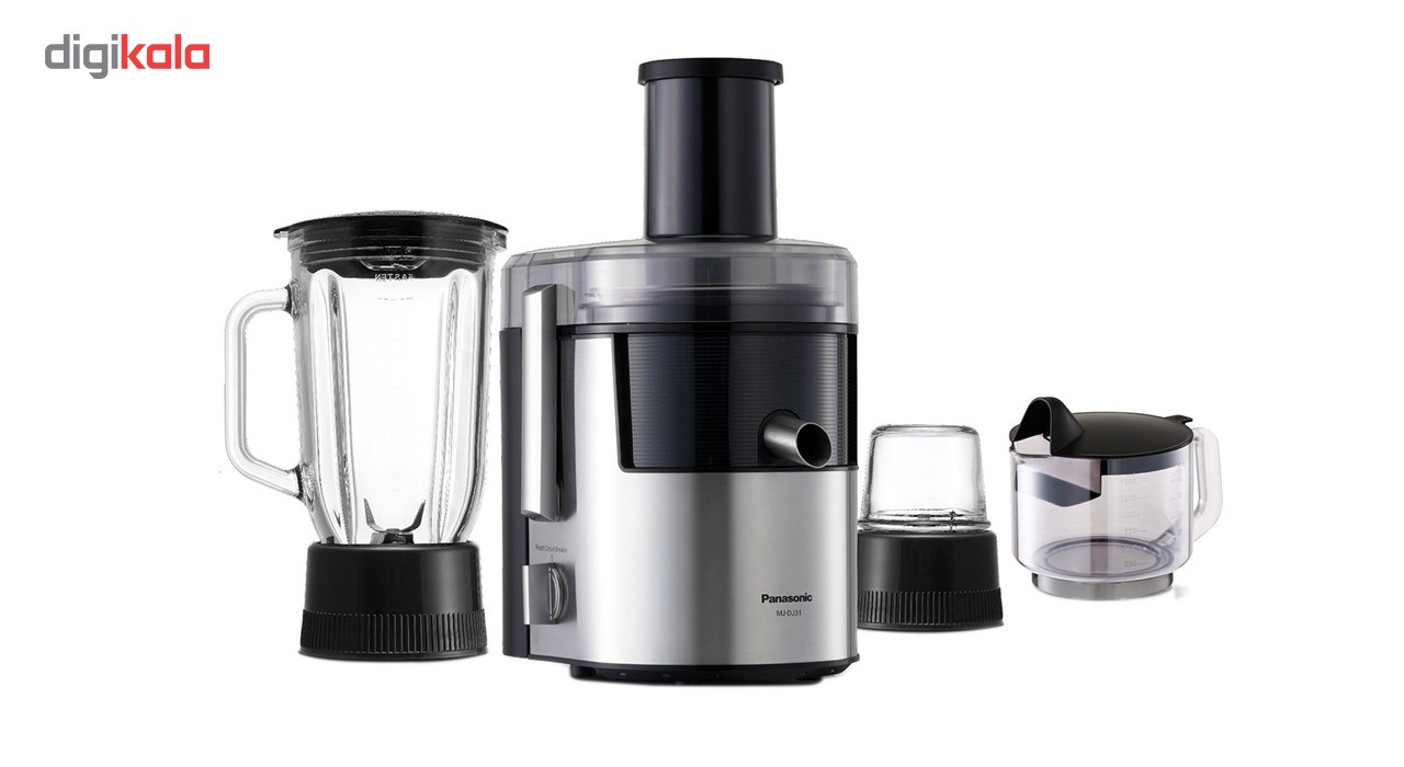 آبمیوهگیری پاناسونیک مدل «MJ-DJ31» از محصولات پرفروش و پرطرفدار این برند است. این دستگاه در کنار آبمیوه گیری میتواند با اضافه شدن دو قطعهی دیگر به مخلوط کن و آسیاب هم تبدیل شود. دستگاه آبمیوهگیری پاناسونیک مدل MJ-DJ31 از تیغهها و فیلتر استیل ضدزنگ بهرهمند است که بهخوبی فرآیند آبگیری را انجام میدهند. زاویهی تیغهها با طراحی ویژه پاناسونیک، راندمان دستگاه را به نحو چشمگیری بالا میبرد. همچنین، تیغه و فیلترهای این آبمیوه گیر قابلشست و شو هستند و به راحتی تمیز میشوند. پس از انجام فرآیند آبگیری، تفالههای میوهها به مخزن تفاله منتقل شده و آبمیوهی طبیعی و سالم در جهت مخالف به ظرف مخصوص آبمیوه منتقل میشود. طراحی این دستگاه به گونهای است که چکهای از دستگاه صورت نمیگیرد و محل استفاده را کثیف نمیکند. آبمیوه گیری پاناسونیک مدل MJ-DJ31 از دو سرعت مختلف بهره میبرد که توسط یک پیچ تنظیم قابل تغییر و انتخاب هستند. قرارگیری پارچ مخلوط کن با حجم بالا روی این دستگاه، قابلیتهای آن را افزایش داده و مواد غذایی را به خوبی خرد و مخلوط میکند. افزونهی دیگر این دستگاه آسیاب آن است که با قدرت تیغهها میتواند مواد بسیاری مانند زعفران، انواع مغز آجیل و مواردی از این قبیل را خرد کرده و به پودر تبدیل کند. استفاده از پایههای ضد لغزش مانع از تکان و جابهجایی دستگاه حین فعالیت میشود.
